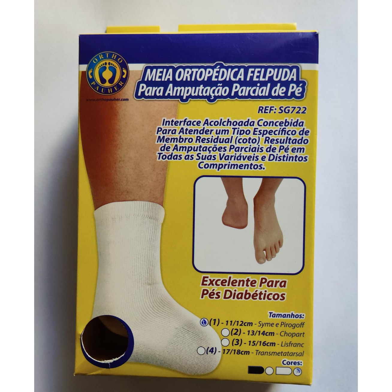 A meia ortopédica felpuda para amputação parcial de pé Ortho Pauher foi desenvolvida para oferecer proteção, conforto e melhor adaptação em casos de amputação parcial do pé, nos níveis transmetatarsal.