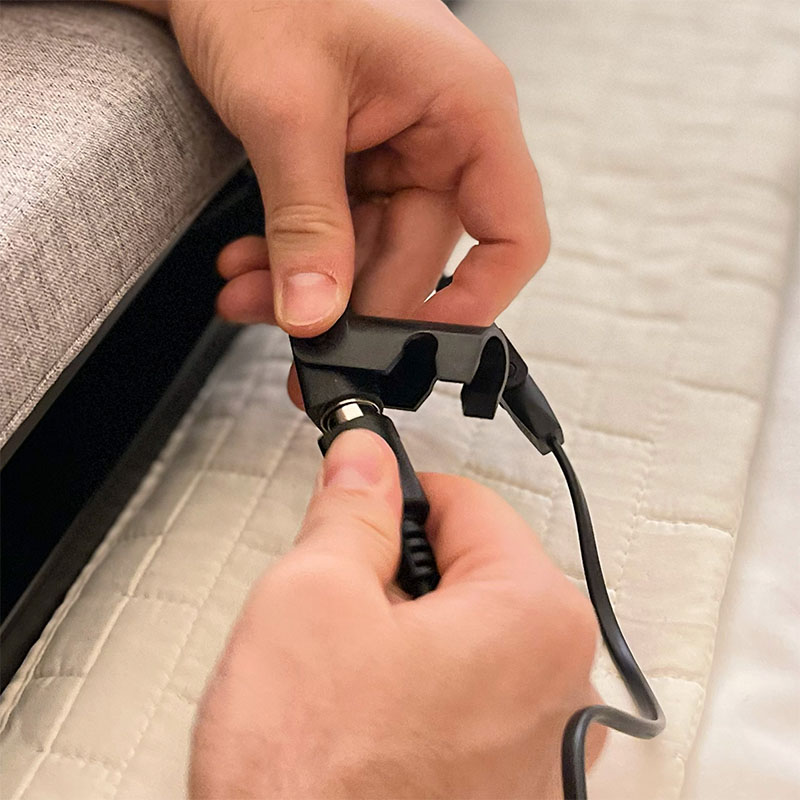 - Conexão elétrica: conecte o encosto de cama elétrico à tomada bivolt (110V/220V).